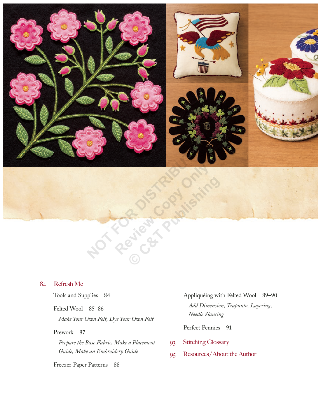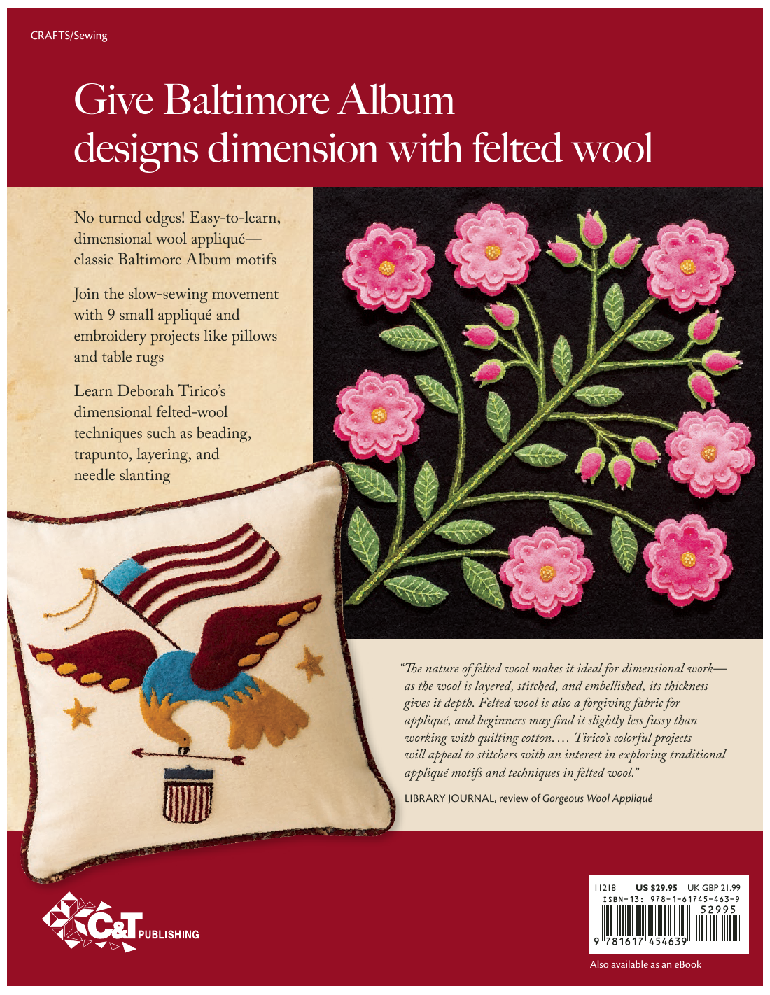 Con lussureggianti lane infeltrite e trame ricche quanto la storia che raffigurano, i motivi noti sono la base per 9 progetti di appliqué, dai tappetini ai cuscini ai puntaspilli.
