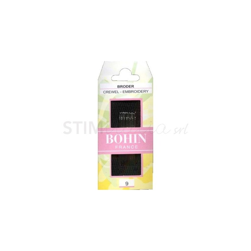 Questa cartina di Aghi Bohin include 15 Aghi con Punta n. 9 per