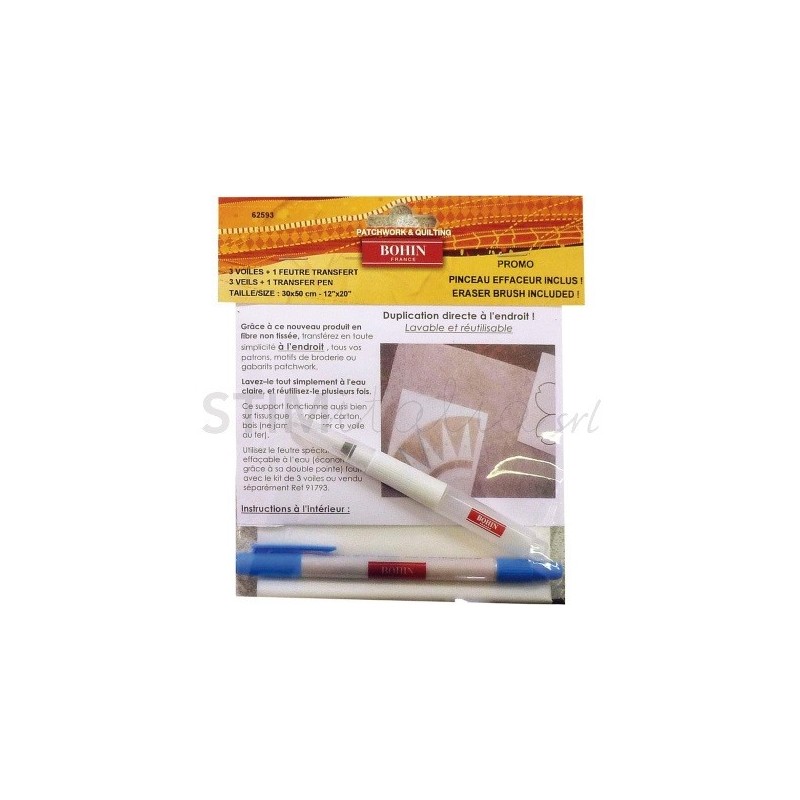Bohin, Carta da Ricalco Magic Paper, 3 fogli 30 x 50 cm + Pennarello Idrosolubile e Cancellino