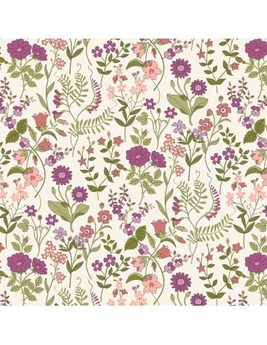 Botanist's Walk, Lola Scatter, Tessuto fondo crema con fiori ciclamino e rosa - Liberty Fabrics