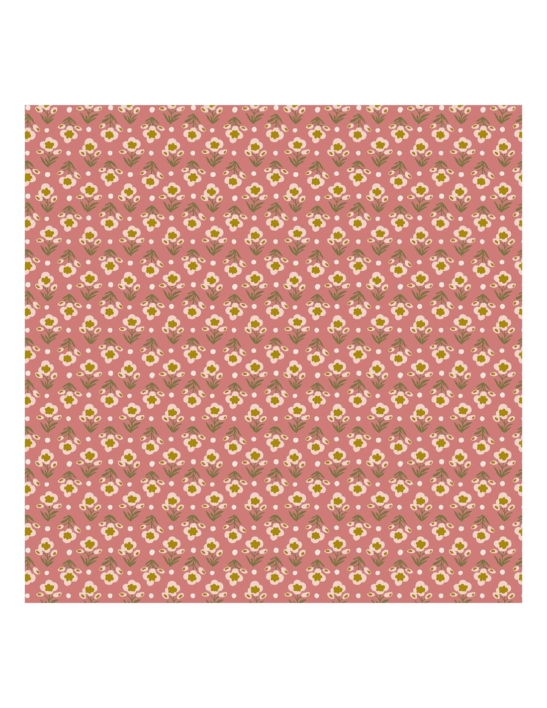 Botanist's Walk, Posy Breeze, Tessuto fondo rosso mattone con fiori e pois - Liberty Fabrics