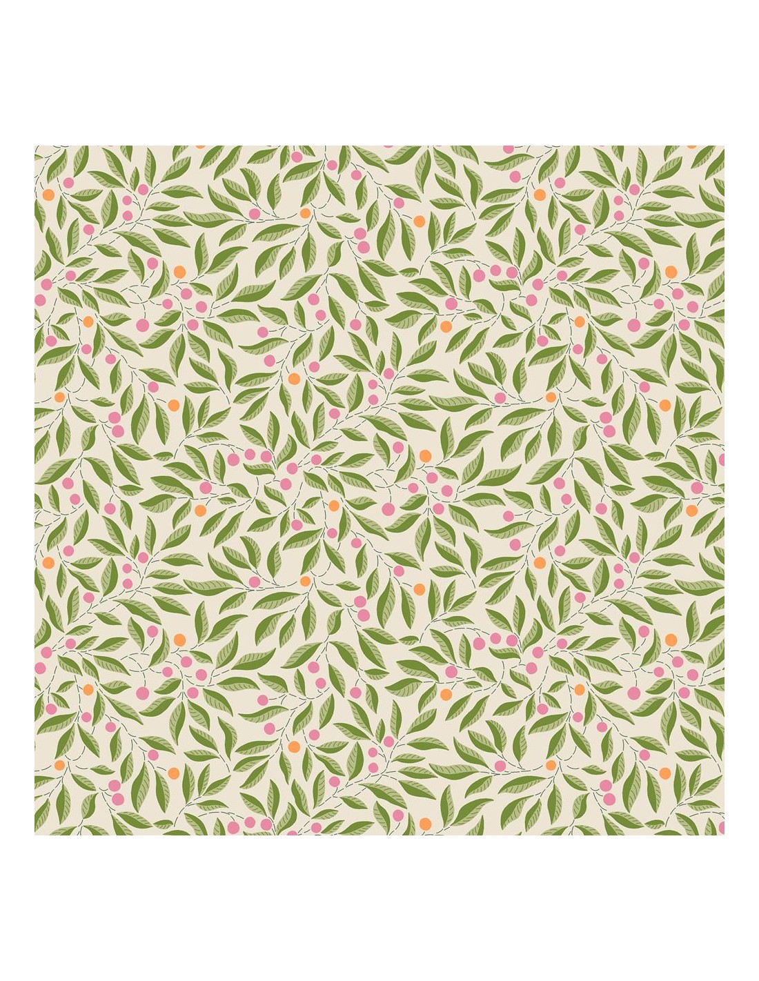 Craft Garden, Willow Stitch, Tessuto fondo crema con rametti di foglie verdi e bacche rosa - Liberty Fabrics