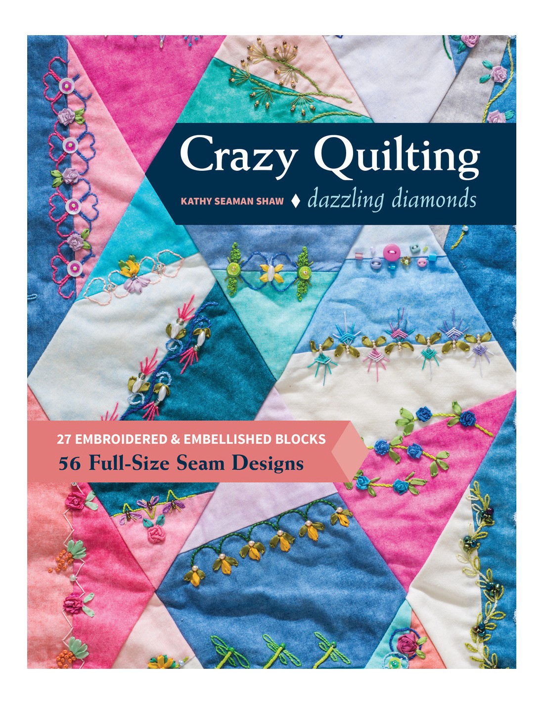 Crazy Quilting Dazzling Diamonds, 27 embroidered & embellished blocks, 56 full-size seam designs by Kathy Seaman Shaw