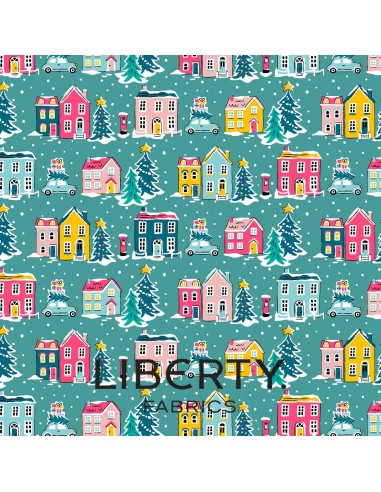 Deck the Halls Polar Magic Holiday Village, Tessuto Azzurro Villaggio di Natale - Liberty Fabrics