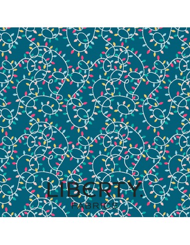 Deck the Halls Polar Magic Tangled Up, Tessuto Azzurro Luci di Natale - Liberty Fabrics