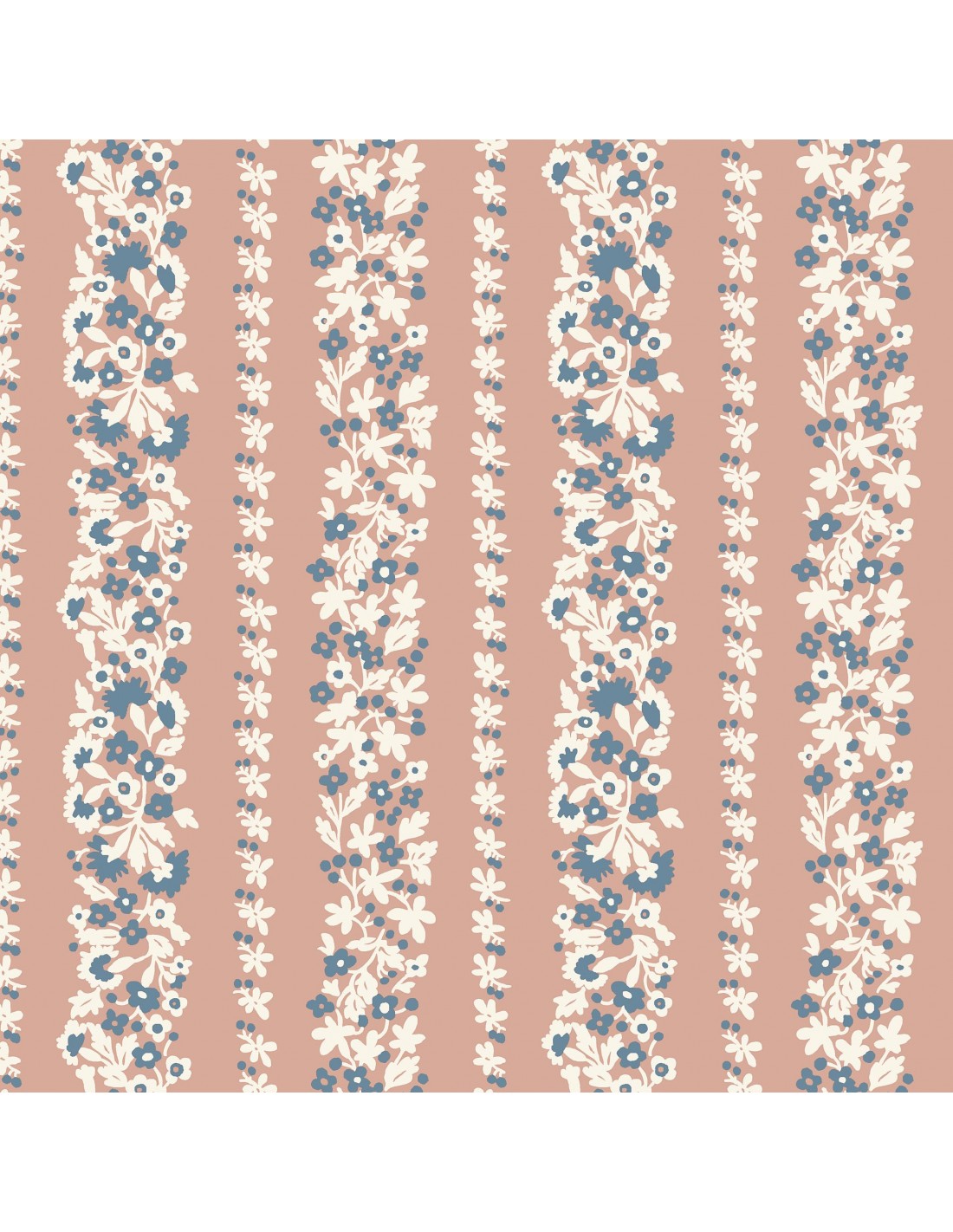 Denim Florals Topiary Stripe, Tessuto Rosa con Arte Topiaria a Strisce - Liberty Fabrics