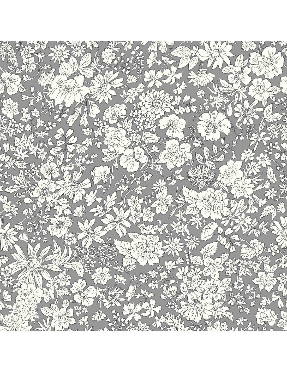 Emily Belle Neutrals Lead, Tessuto Grigio Piombo a fiori bianchi - Liberty Fabrics
