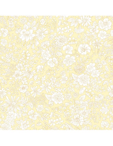 Emily Belle Neutrals Magnolia, Tessuto Giallo tenue a fiori bianchi - Liberty Fabrics