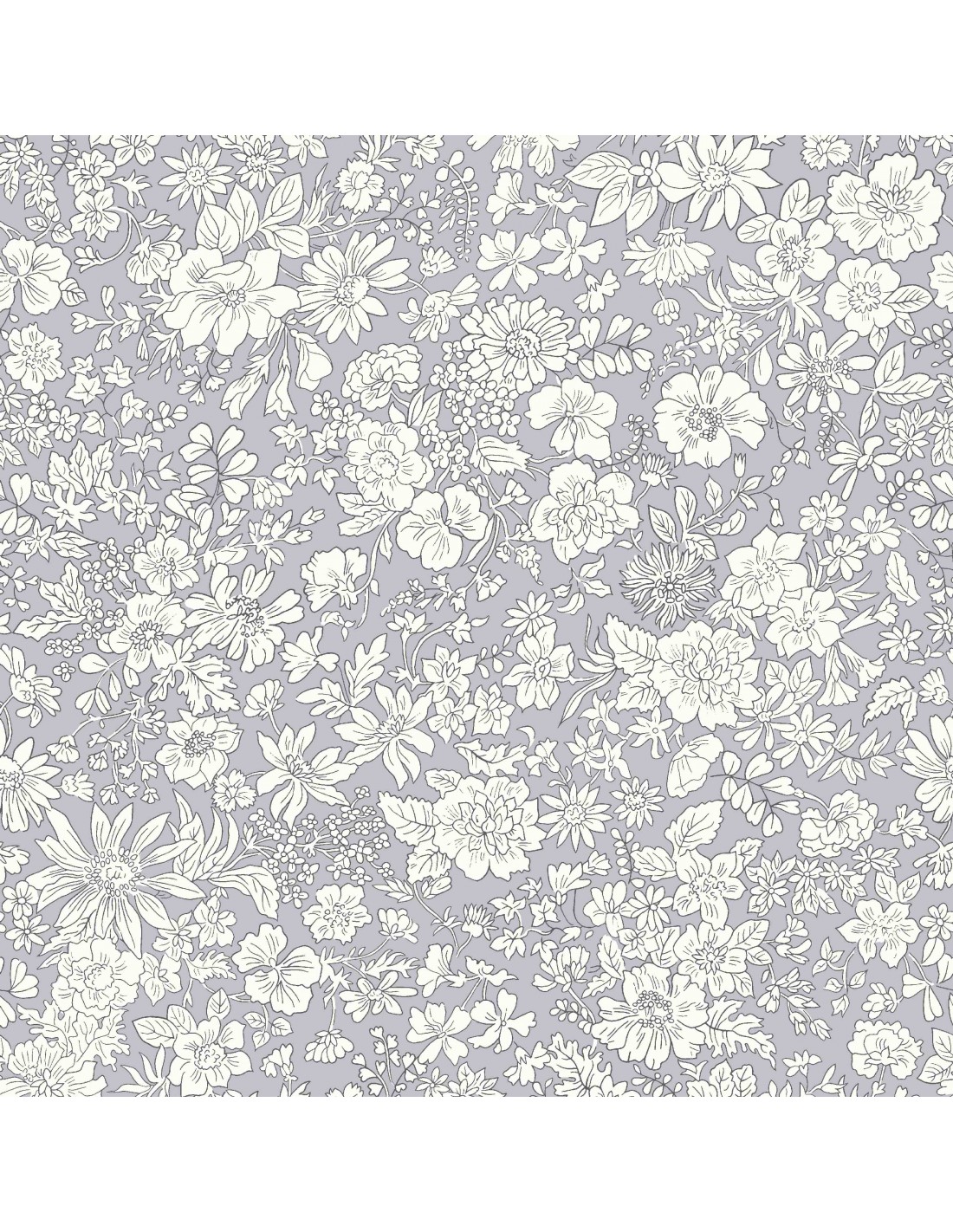 Emily Belle Neutrals Steel, Tessuto Grigio Acciaio a fiori bianchi - Liberty Fabrics