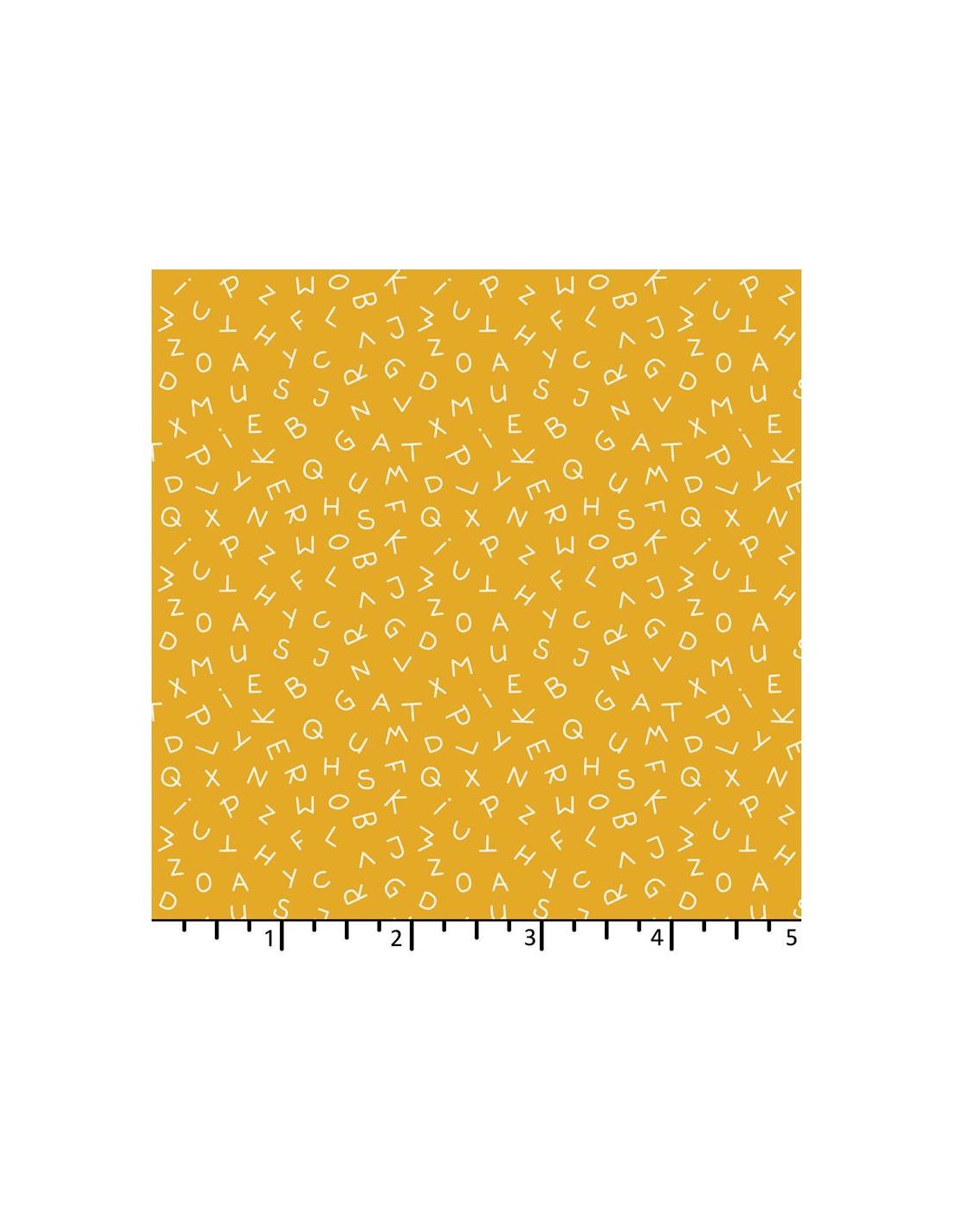 EQP Forward to the Past - ABC - Mustard, tessuto mostarda piccole lettere dell'alfabeto crema