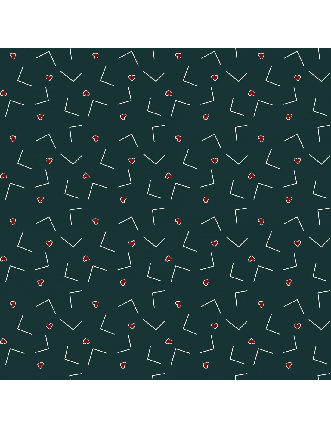 EQP New Vintage Love Letters Midnight Blue, Tessuto verde con cuori
