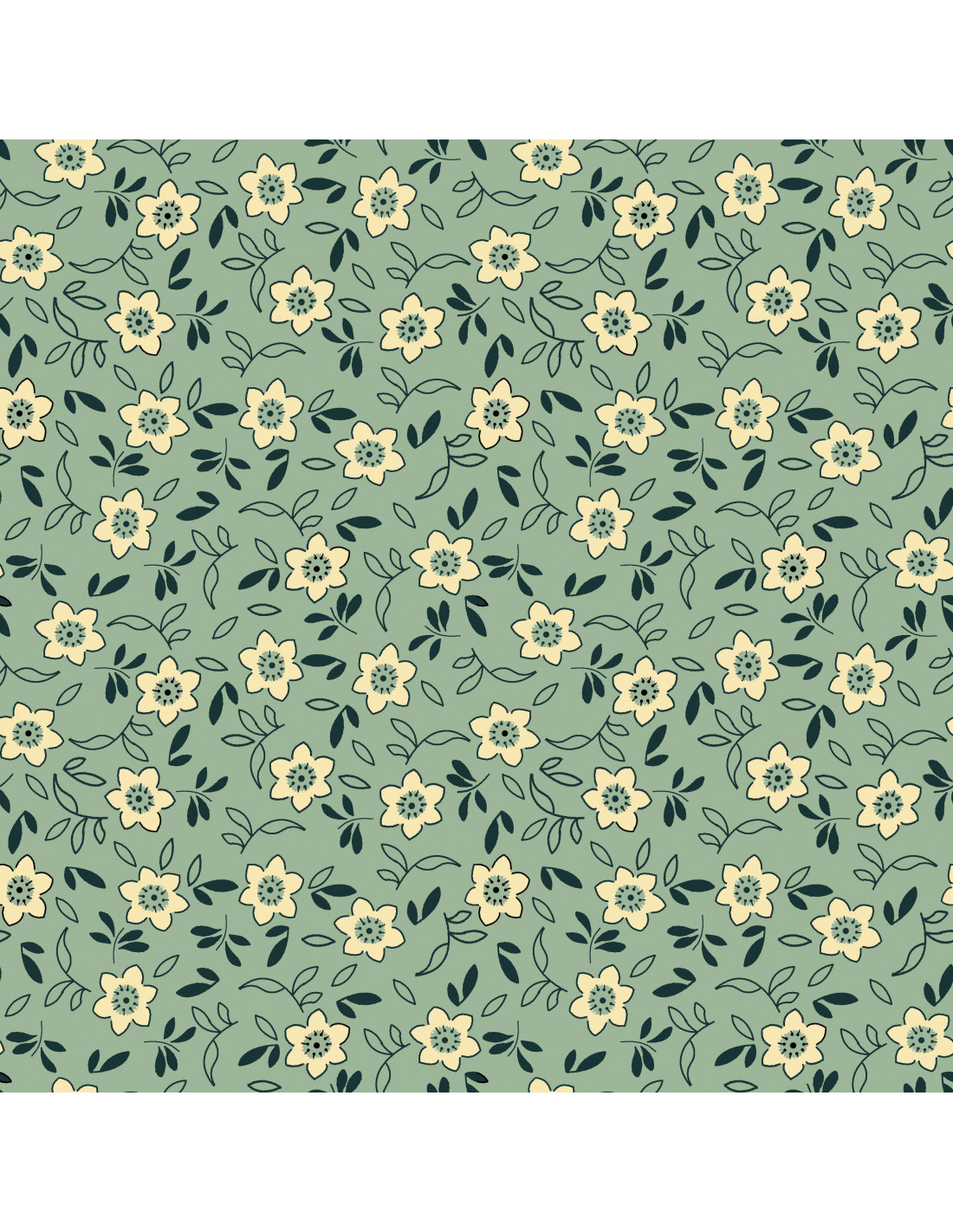 EQP New Vintage Rose Hip-Glacier Blue, Tessuro verde menta a fiori