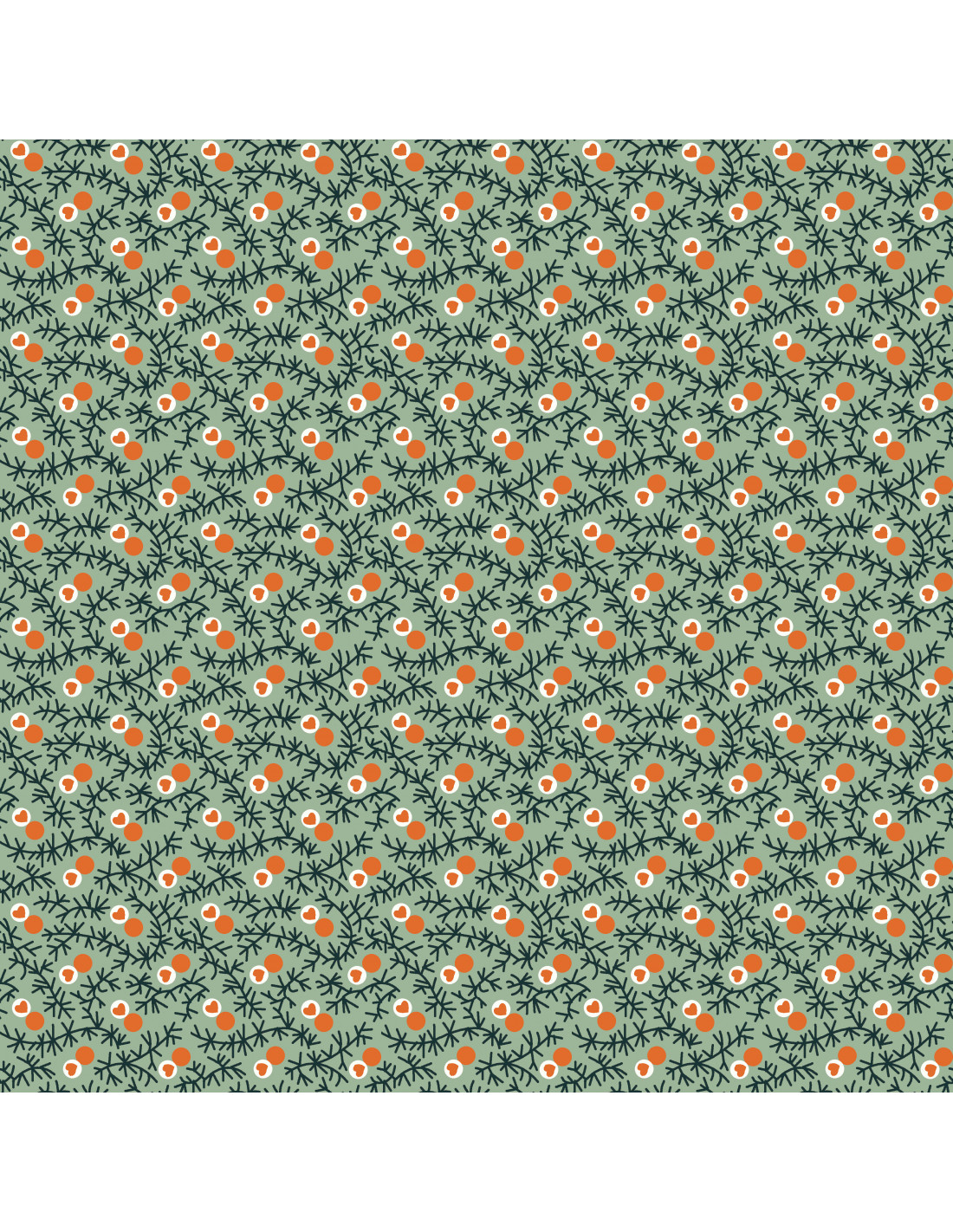 EQP New Vintage Sweetheart Glacier Blue, Tessuto verde menta con rametti e cuori