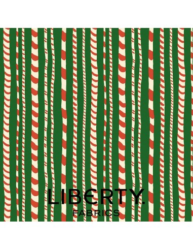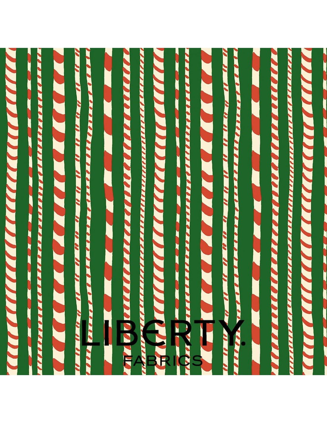Festive Fair Candy Cane Stripe, Tessuto Verde a Righe - Liberty Fabrics