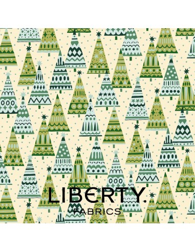 Festive Fair Frosty Forest, Tessuto con Alberi Verdi e Azzurri - Liberty Fabrics