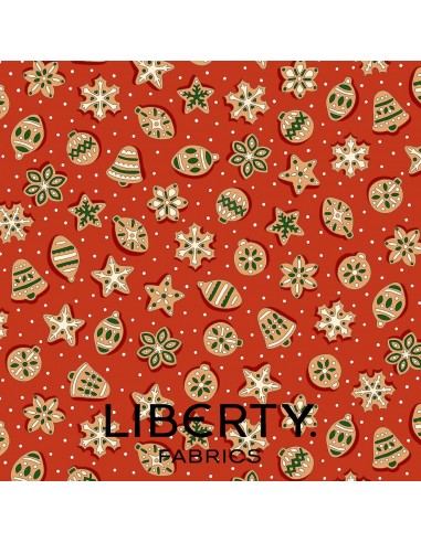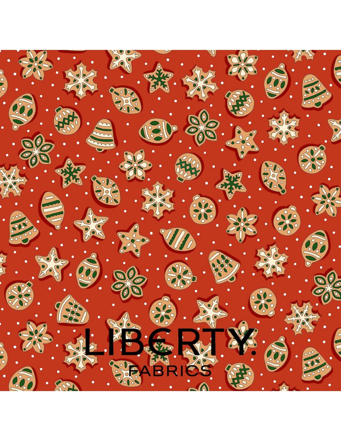 Festive Fair Gingerbread Delight, Tessuto Rosso con Biscotti Speziati - Liberty Fabrics