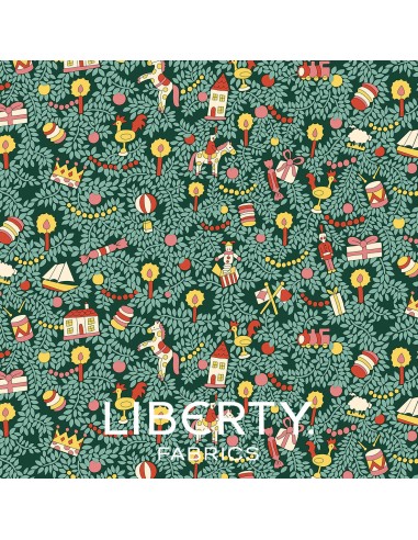 Festive Fair Toy Tree, Tessuto Verde con Simboli Natalizi - Liberty Fabrics