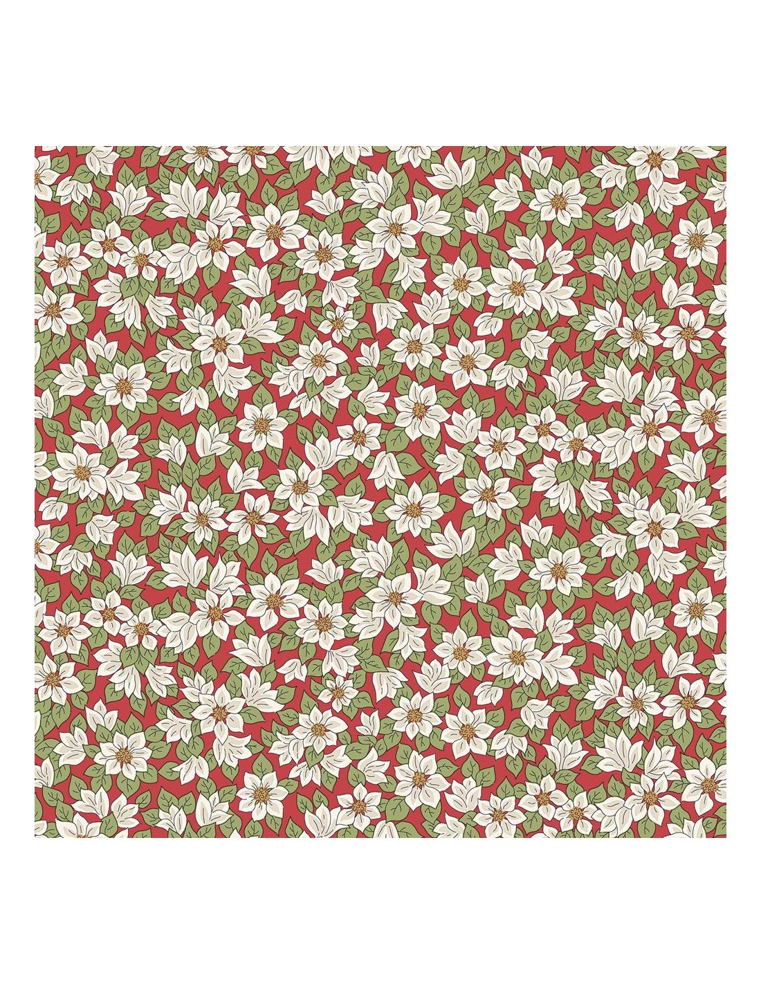 Festive Greetings, Peaceful Poinsettias, Tessuto rosso con stelle di Natale bianche - Liberty Fabrics