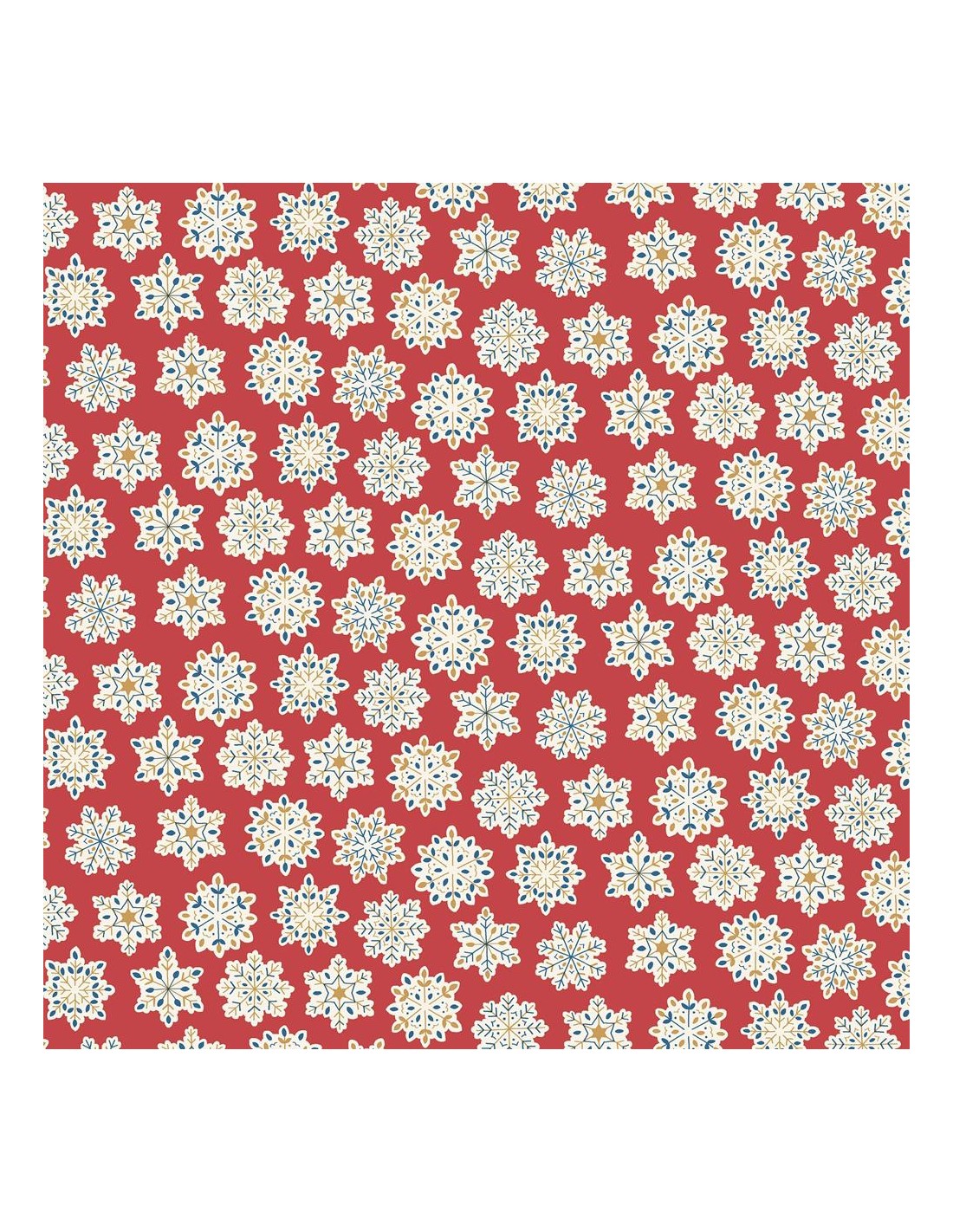 Festive Greetings, Snow Season, Tessuto rosso con fiocchi di neve - Liberty Fabrics