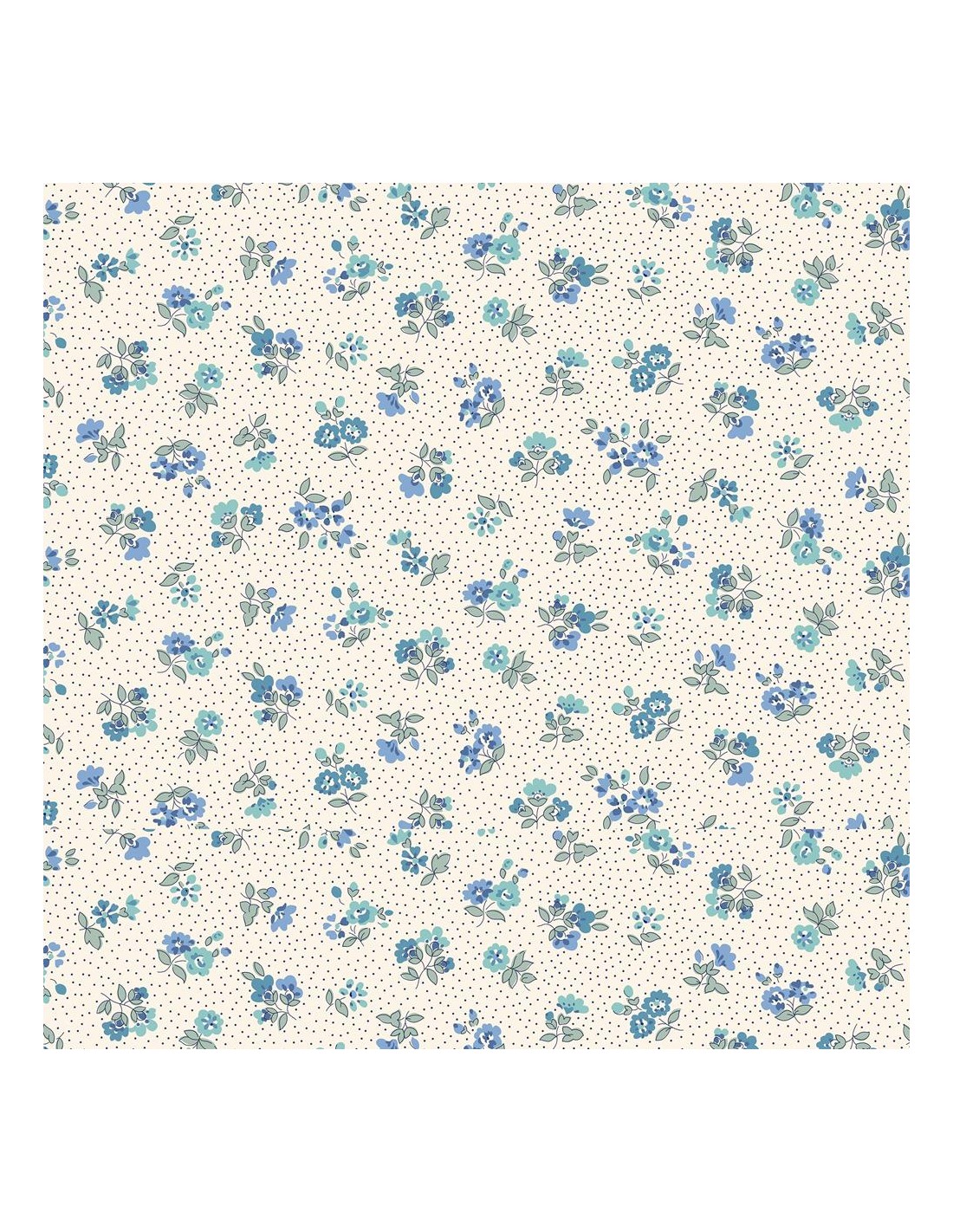 Floral Nostalgia, Flora Beatrice, Tessuto fondo crema a pois con mazzolini di fiori azzurri - Liberty Fabrics