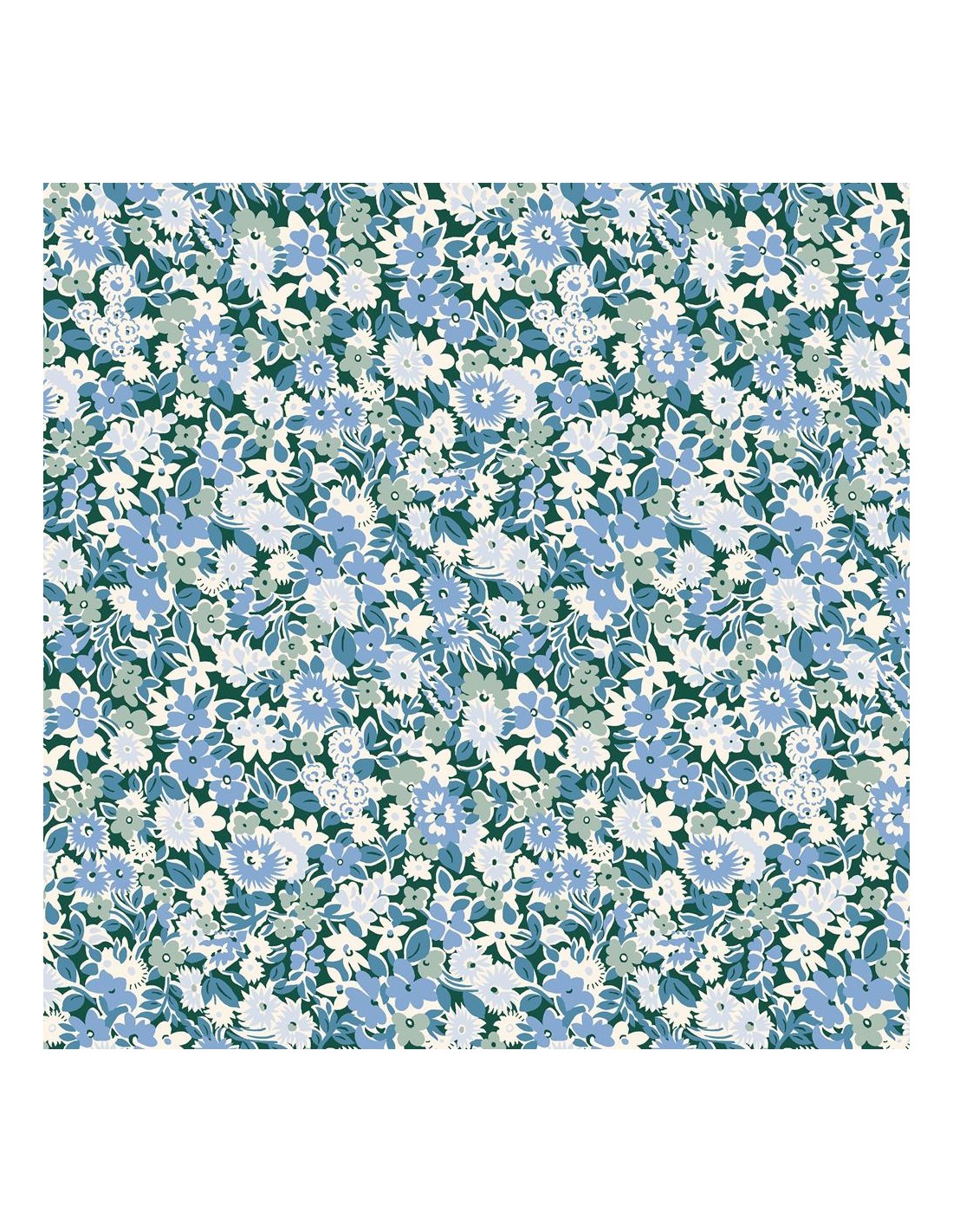 Floral Nostalgia, Isly Garden, Tessuto con fiori azzurri fitti su fondo verde - Liberty Fabrics