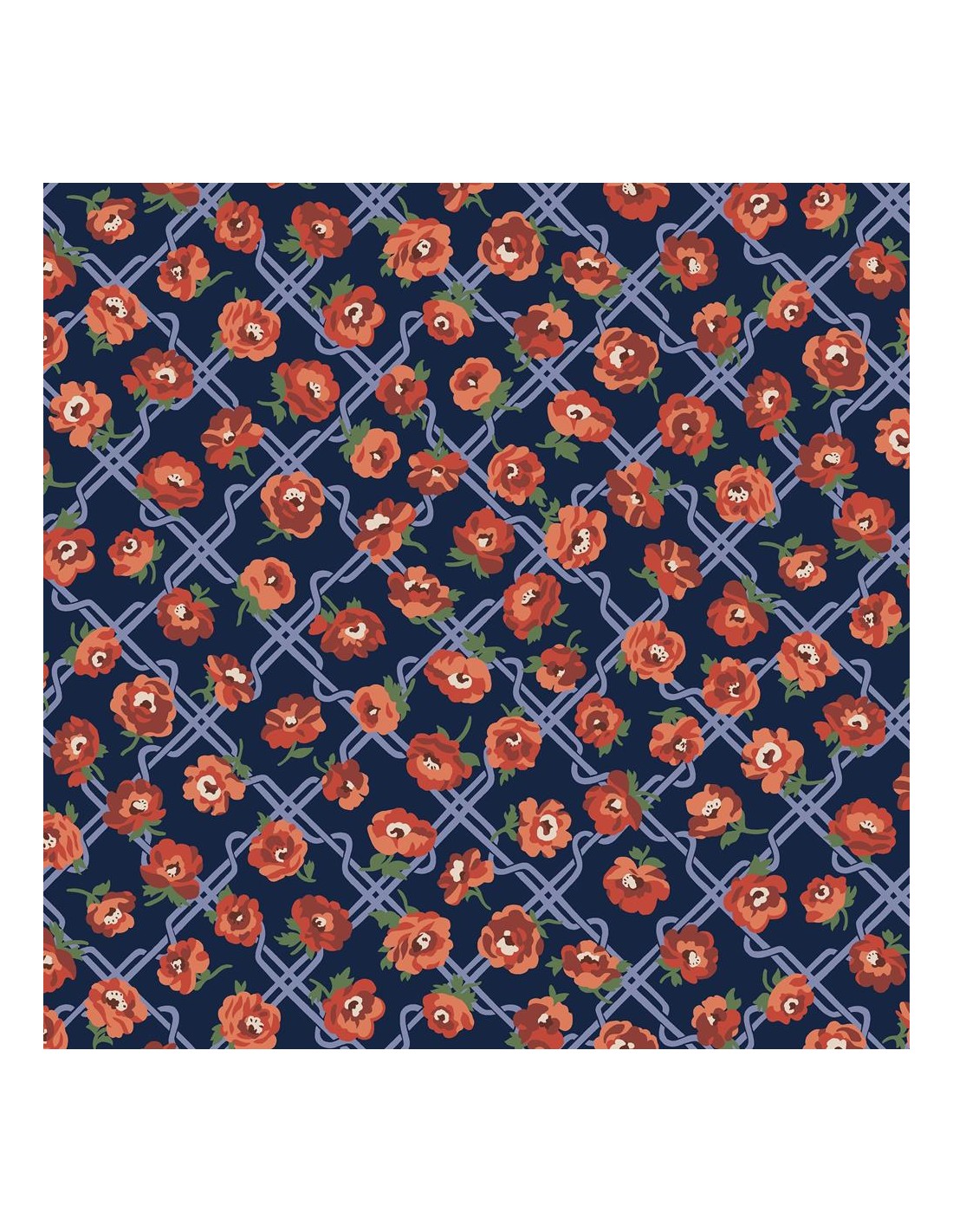 Realizzato con uno stile un po' ingenuo, Rosemary Blooms unisce due distinte stampe d'archivio Liberty degli anni '70, fondendo l'eleganza floreale con il fascino geometrico. Il design presenta una struttura a intreccio che ricorda un traliccio da giardino, splendidamente ornato da delicate rose.