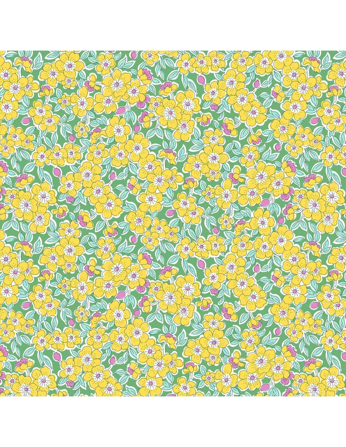 Tessuto stampato della collezione Gifts from the Garden di Liberty Fabrics ispirata ai piccoli tesori, come fiori e frutta che il giardino offre in primavera.