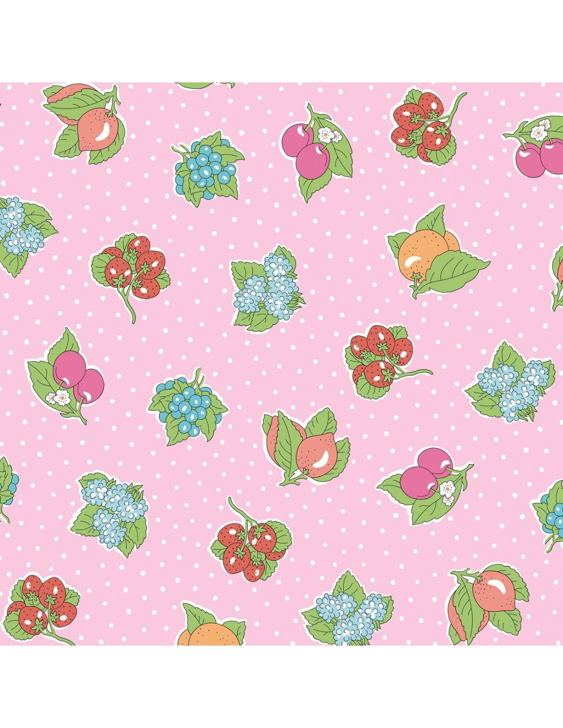 Gifts from the Garden, Polka Fruit, Tessuto Rosa a pois con frutti - Liberty Fabrics
