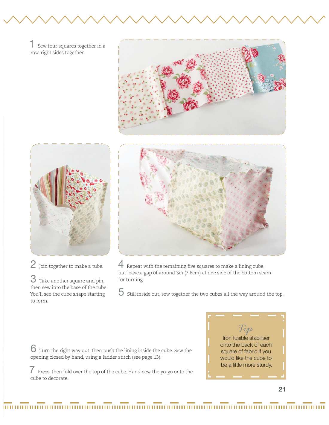 La superstar del cucito, Debbie Shore, ha progettato 31 splendidi accessori per la casa che possono essere realizzati utilizzando mezzo metro di tessuto o meno.