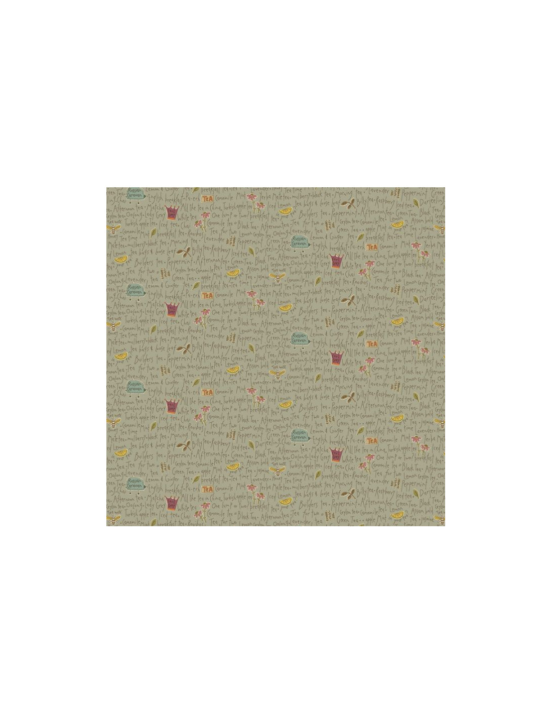 Henry Glass, Tealicious by Anni Downs - Tessuto Verde Polvere con Parole Tealicious - 110cm Henry Glass - 1
