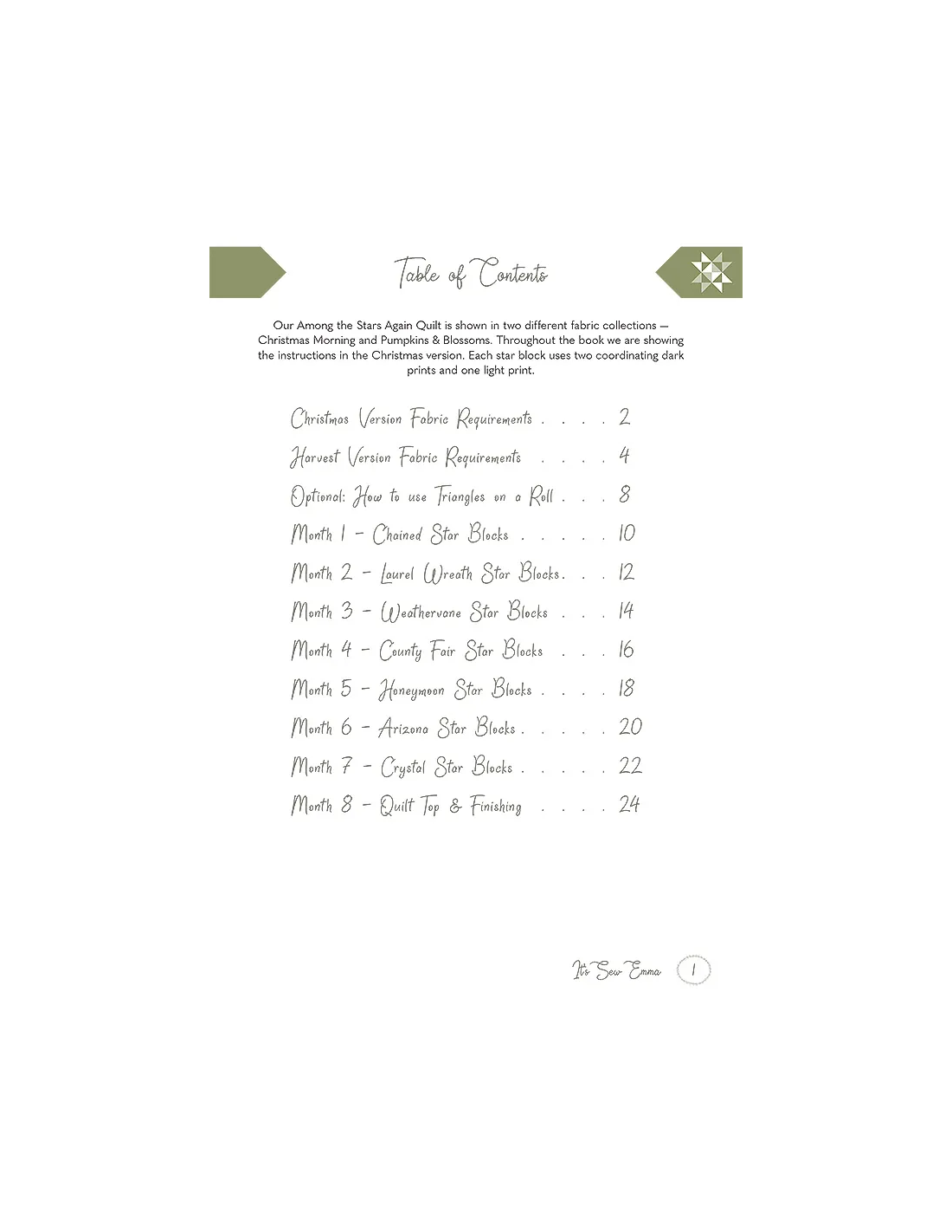 Il libro 'Among the Stars Again' combina vecchi blocchi del libro di quilt 'Among the Stars' originale con nuove stelle fresche in un ambiente nuovo di zecca.