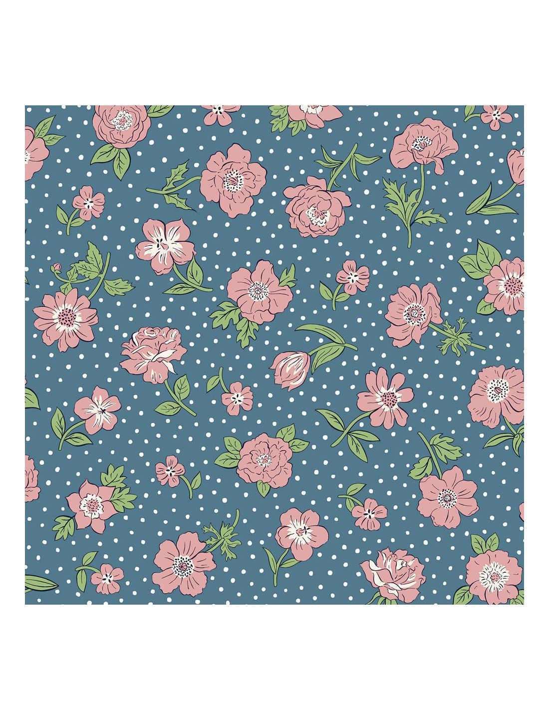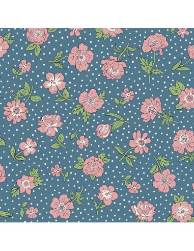 London Bouquet, Heritage Park, Tessuto fondo azzurro a pois con fiori rosa sparsi - Liberty Fabrics