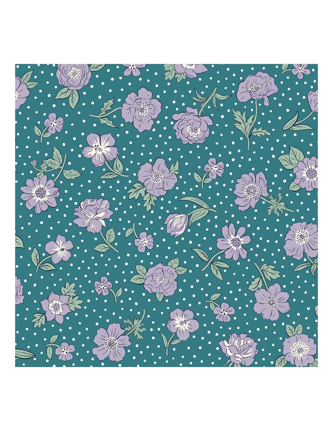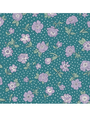 London Bouquet, Heritage Park, Tessuto fondo verde a pois con fiori lilla sparsi - Liberty Fabrics