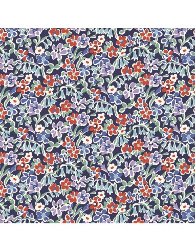 London Bouquet, Regent Meadow, Tessuto fondo blu scuro con anemoni e giacinti - Liberty Fabrics