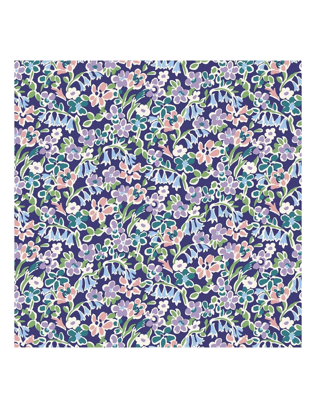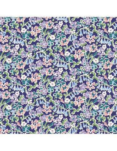 London Bouquet, Regent Meadow, Tessuto fondo viola scuro con anemoni e giacinti - Liberty Fabrics