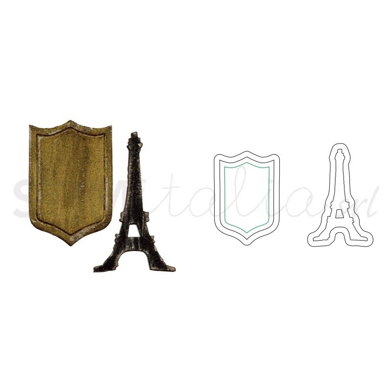 Movers & Shapers Magnetic Die Set 2PK Mini Eiffel Tower & Shield by Tim Sizzix - Big Shot - 2