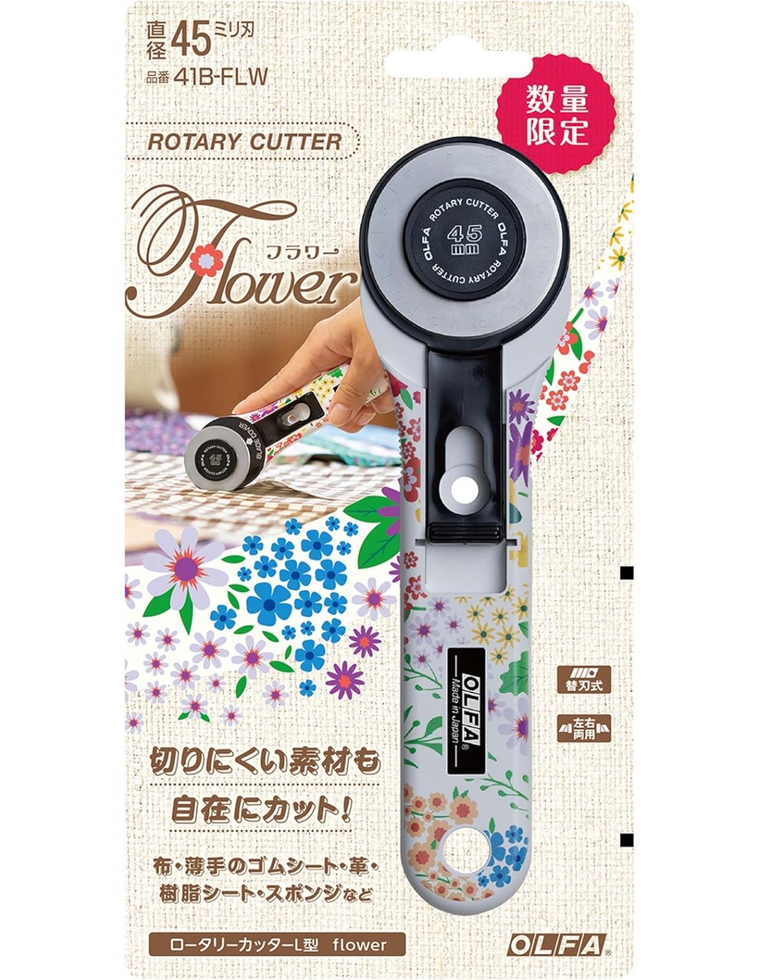OLFA Taglierina con Lama Rotante da 45 mm, manico dritto - Edizione Speciale Floreale, versione Japan