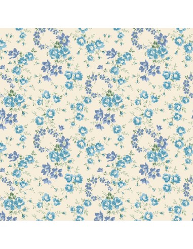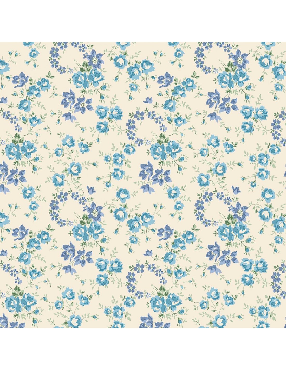 Palace Garden, Petal Crown, Tessuto con fiori rosa e azzurri su fondo crema - Liberty Fabrics