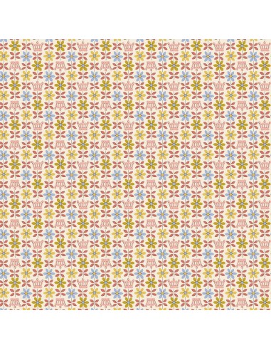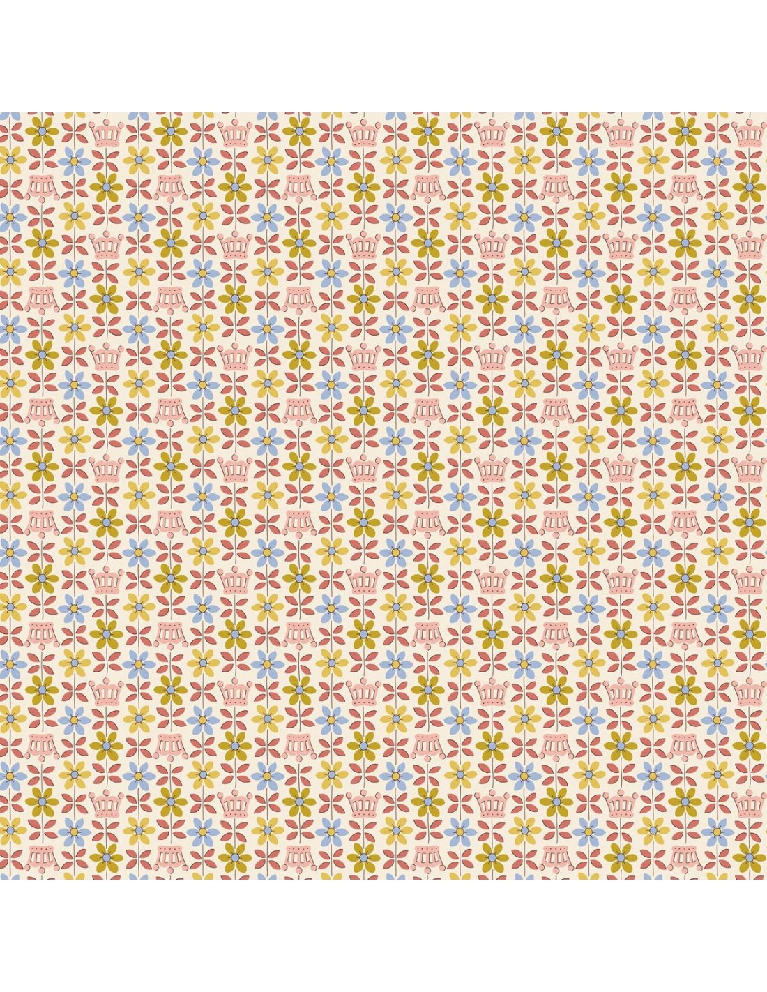 Palace Garden, Royal Posies, Tessuto con file di fiori azzurri e corone azzurre su fondo crema- Liberty Fabrics