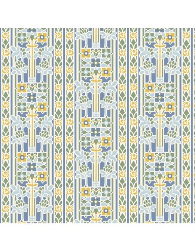 Palace Garden, Stately Gardens, Tessuto con righe e strisce di fiori in azzurro e giallo- Liberty Fabrics
