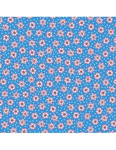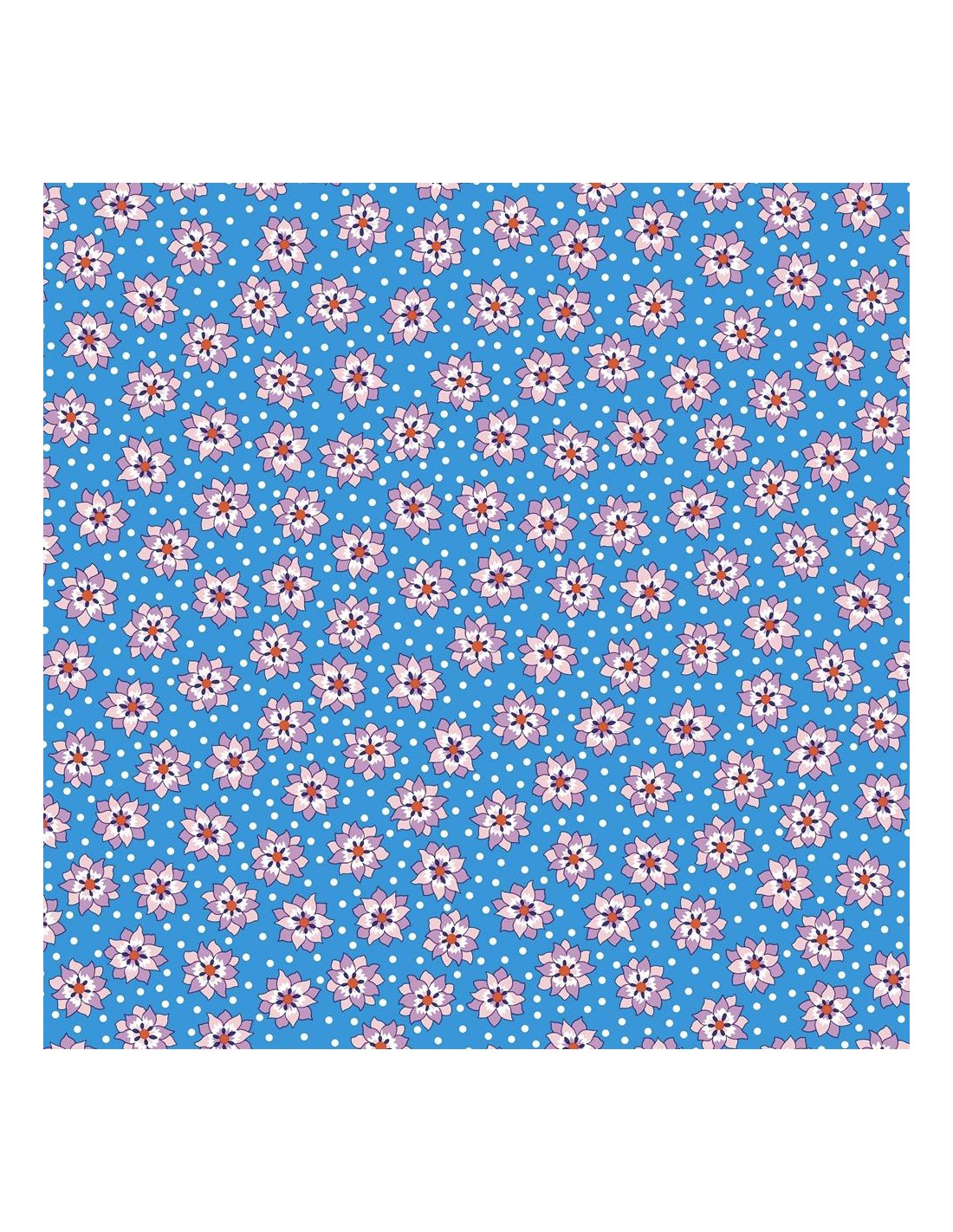 Postcard from Paradise, Lotus Spot, Tessuto con fiori di loto stilizzati e pois su fondo azzurro- Liberty Fabrics