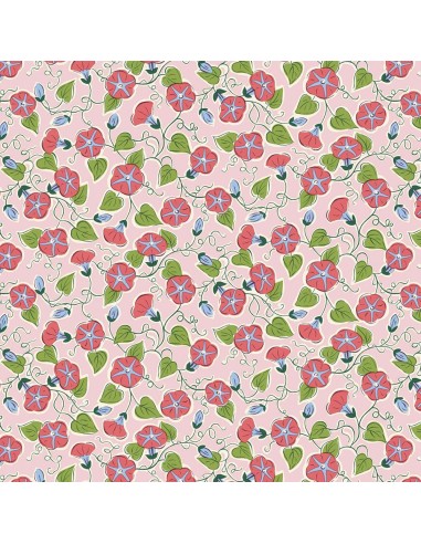 Postcard from Paradise, Paradise Vine, Tessuto con fiori di convolvolo rosa scuro su fondo rosa - Liberty Fabrics