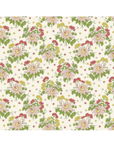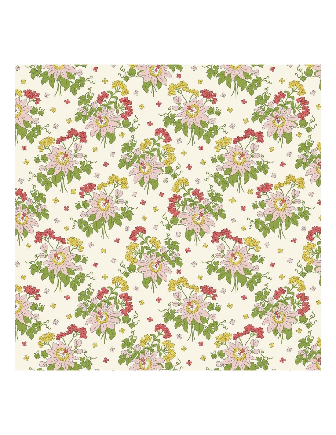 Postcard from Paradise, Passionflower Sway, Tessuto con bouquet di fiori della passione rosa su fondo crema- Liberty Fabrics
