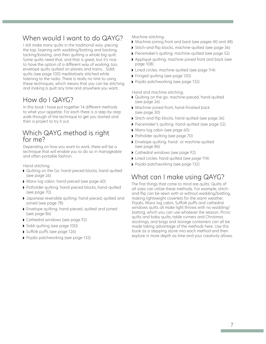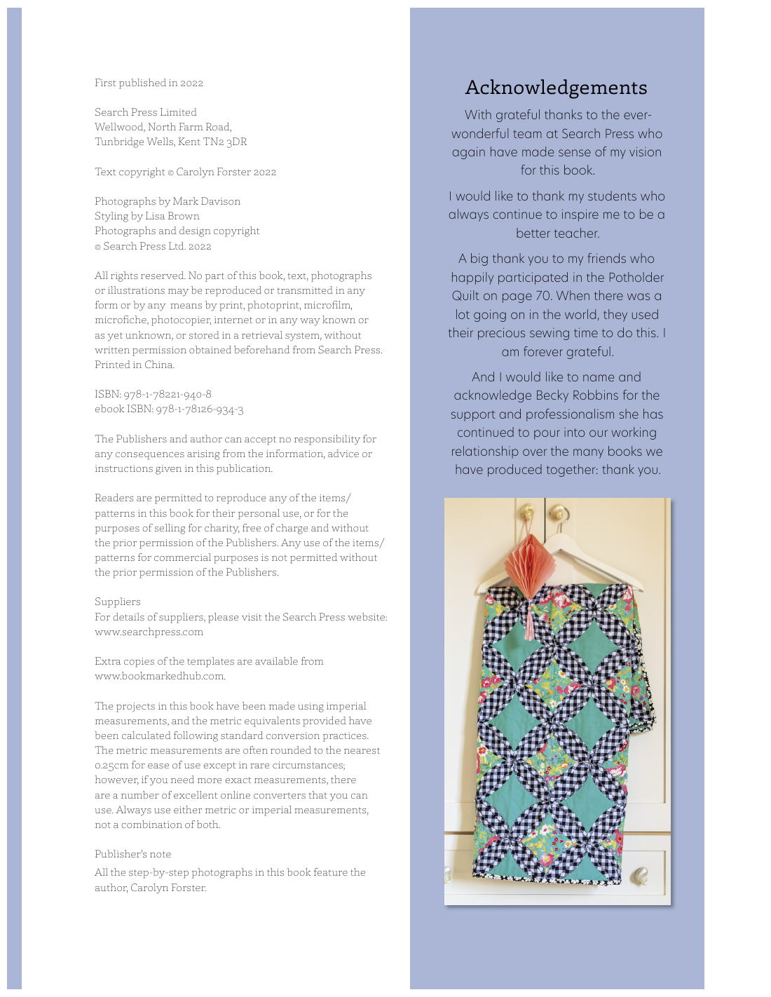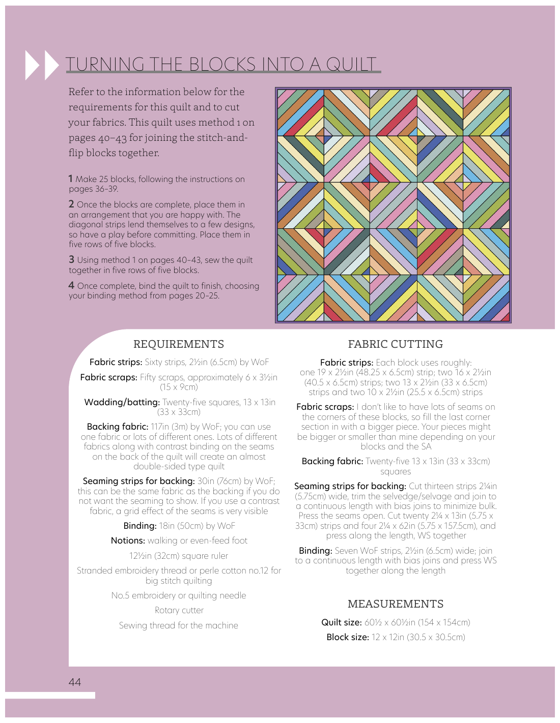 Ogni tecnica viene fotografata passo dopo passo, quindi ogni blocco separato completato può essere trasformato in uno straordinario progetto di trapunta, completo di istruzioni complete.