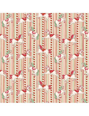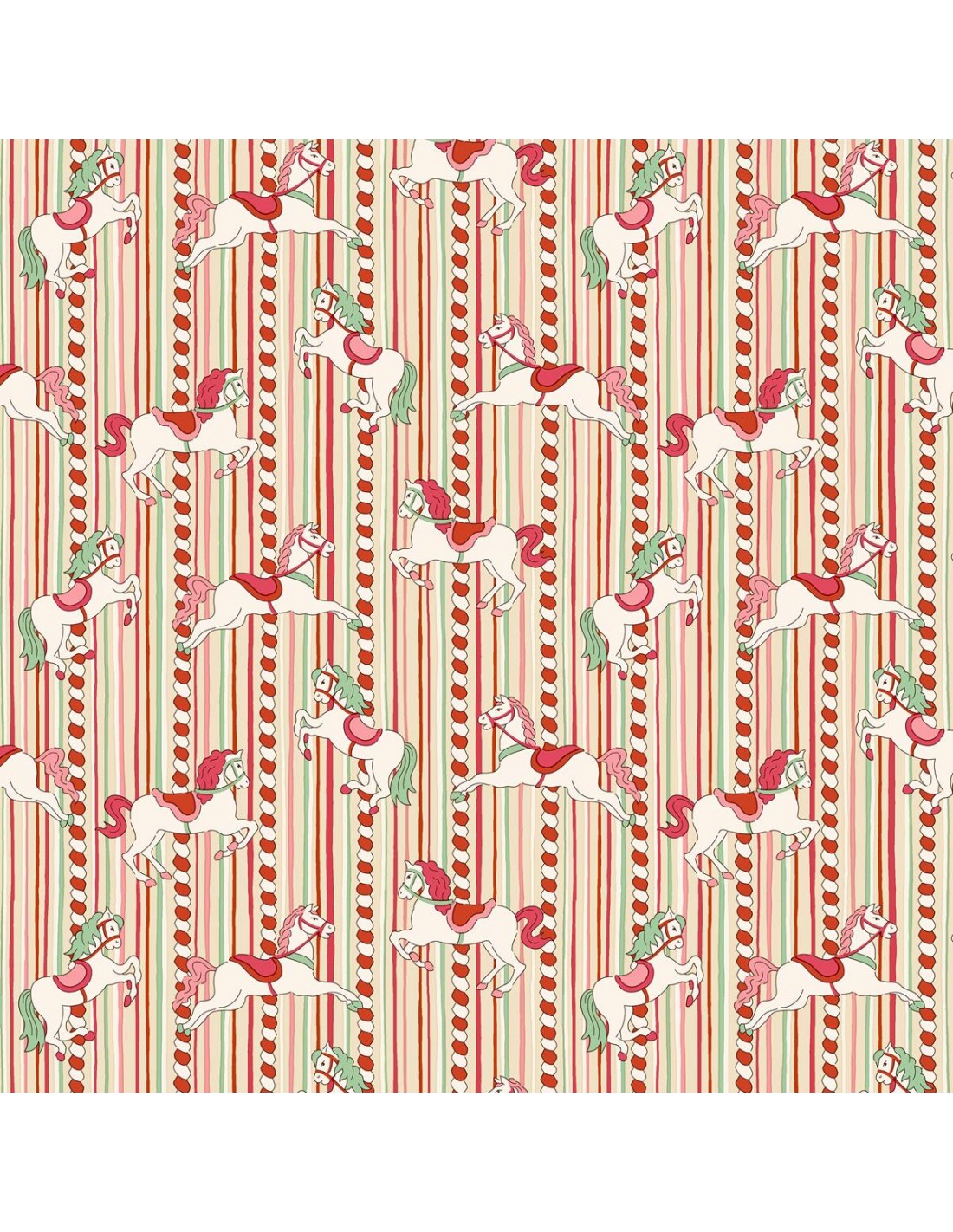 Summer Fair, Emolly Carousel, Tessuto Rosso e Rosa con righe e cavalli della giostra- Liberty Fabrics