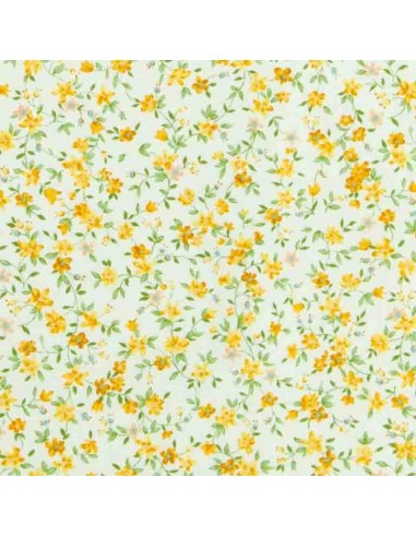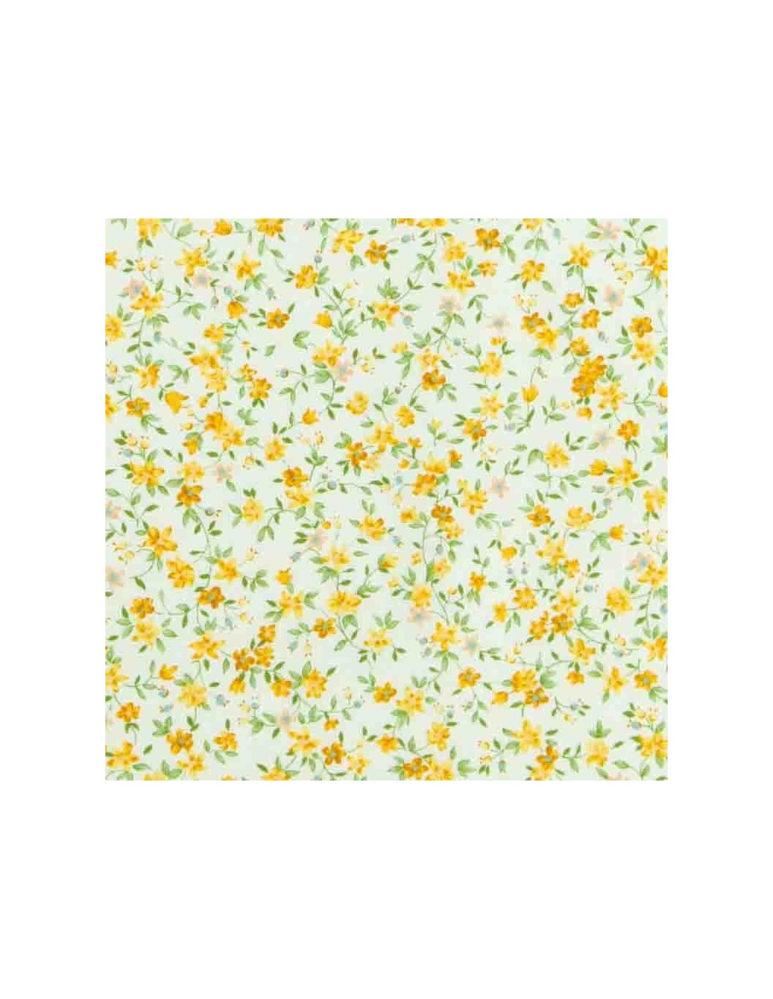 Tessuto giapponese con fiori gialli su verde acqua- Sevenberry Flower
