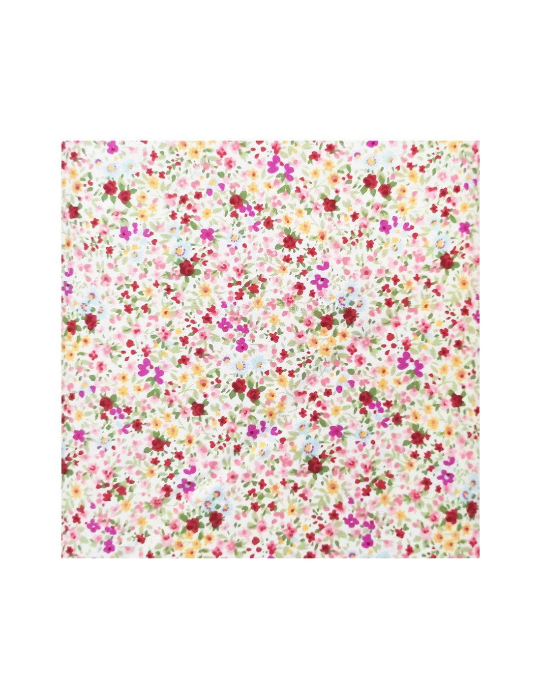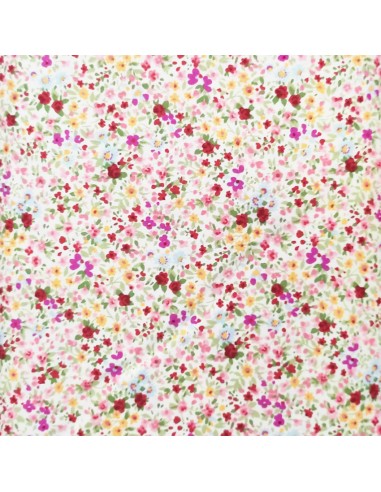 - Tessuto fondo bianco con piccoli fiori rosa e fucsia