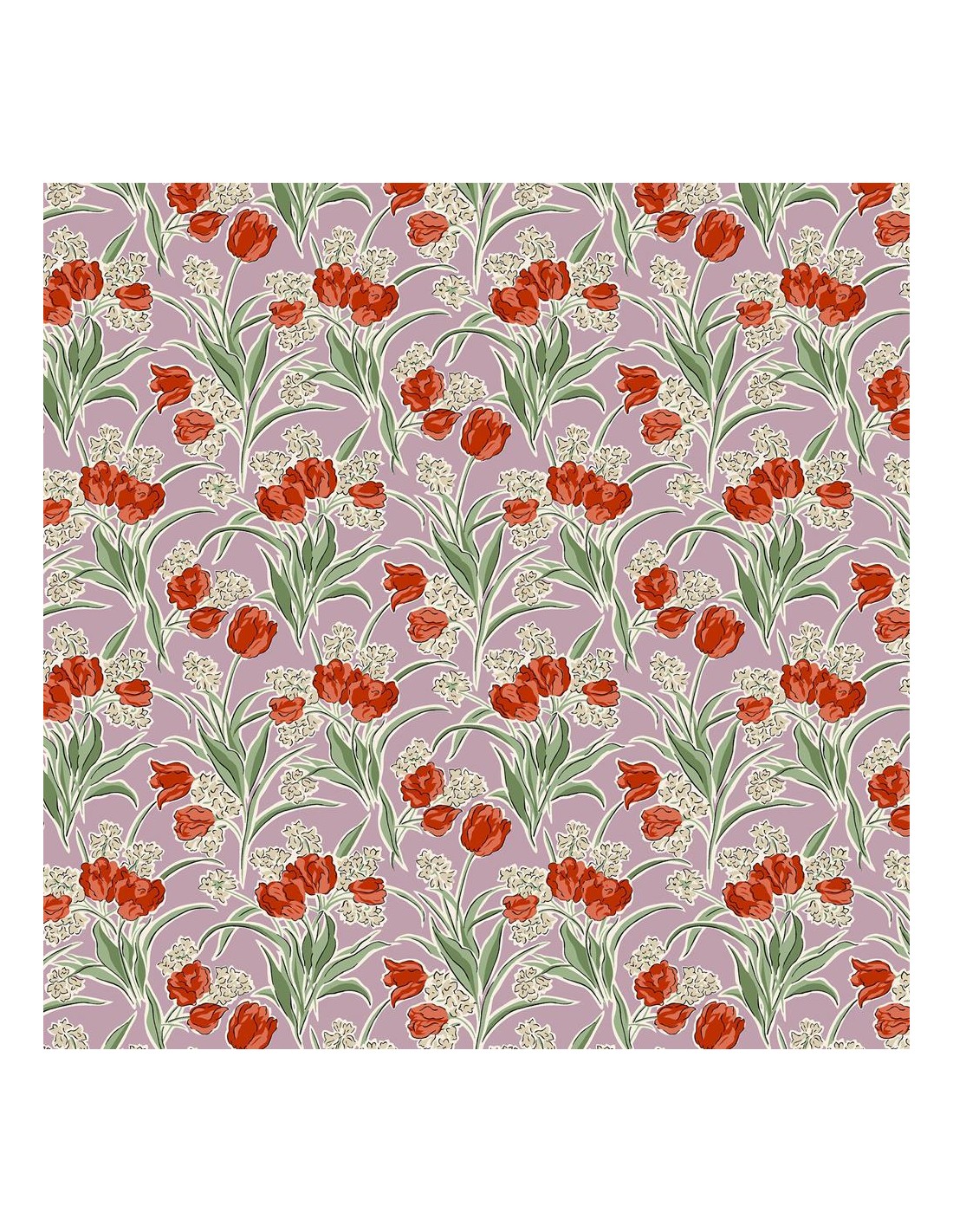 Adattato da un'opera d'arte del 1988, questo splendido motivo floreale è stato selezionato dall'archivio per rappresentare i vivaci bouquet che adornano l'ingresso principale del negozio Liberty. Graziosi mazzi di tulipani e giacinti sono stati ridisegnati con contorni sottili e ombre semplificate, creando un'elegante immagine primaverile.