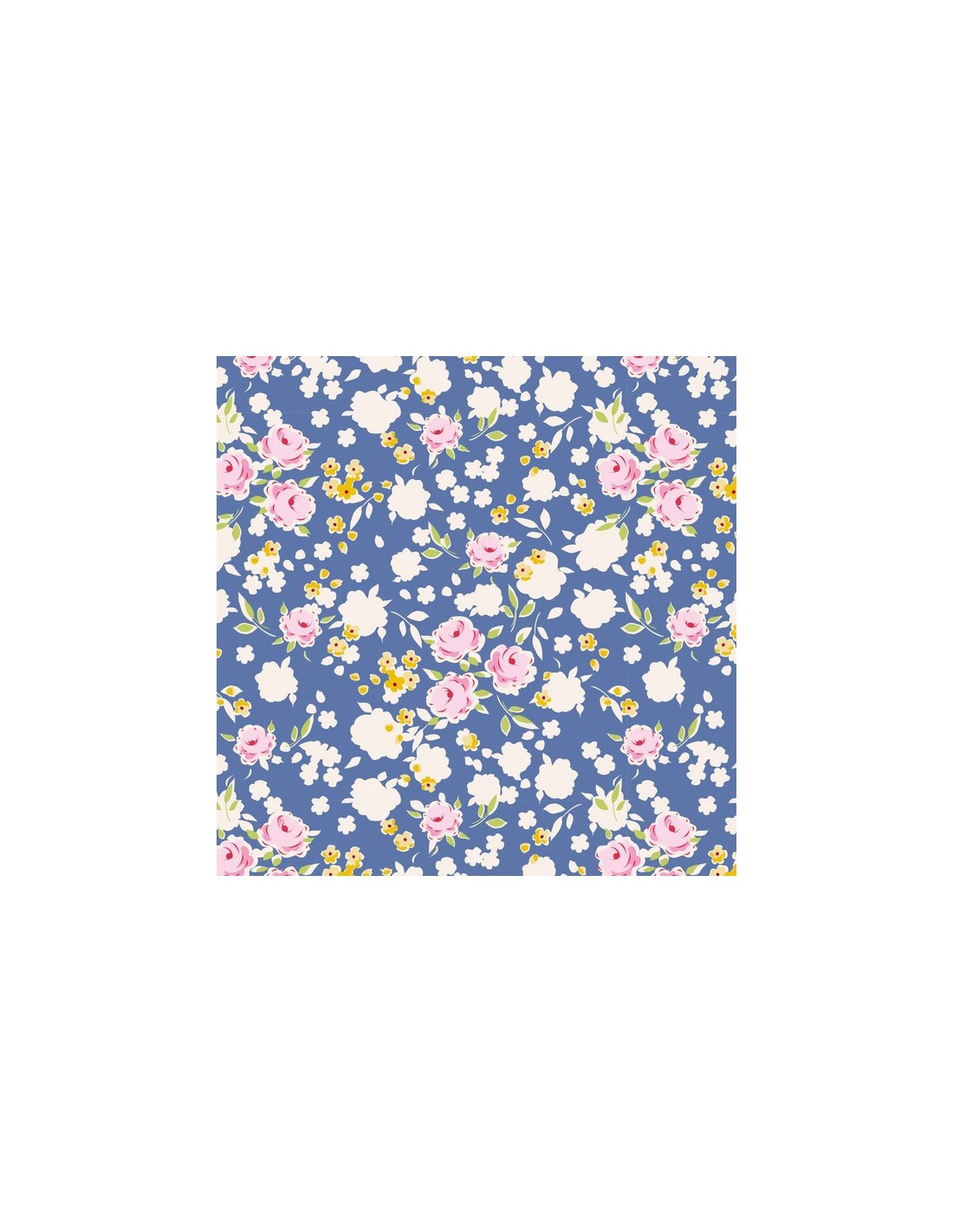 Stoffa al Metro Tilda AppleButter Bonnie Blue. Tessuto Blu con Fiori.