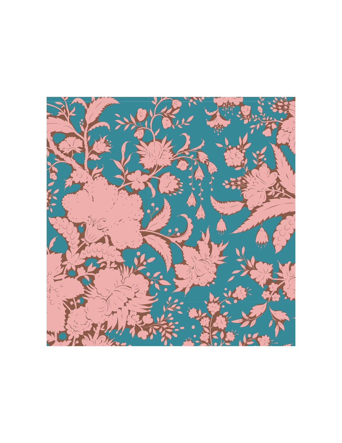 - Tessuto Fondo Blu Petrolio con fiori Rosa.